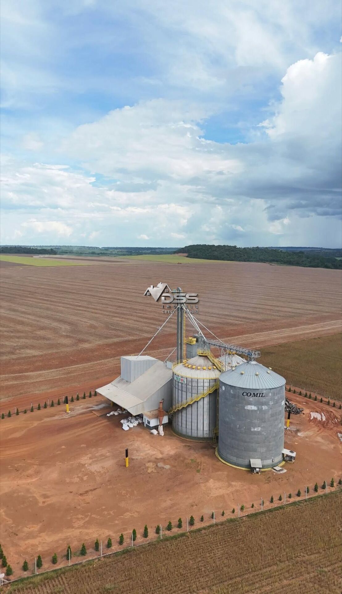 - Armazém: 1 silo 45.000 sc; 1 silo 40.000 sc: 1 silo pulmão 10.000 sc; 1 secador 100T/HRS; 1 pre limpeza 100T/ HRS; Elevador 120 T/HRS.